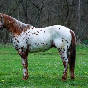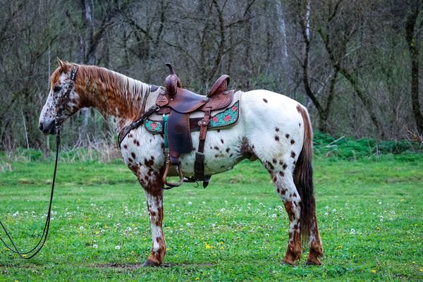 This is “AMARETTO”, a real flashy, super loud colored sorrel and white leopard Appaloosa Gelding. He has been used for lots of ranch work and has many outside miles on him behind cattle and loose horses. He will neck rein, stop easily, back up, and move out when asked. He has been ridden with lots of dogs trailing his heels. He has been ridden English and Western and will jump a low level course. He has also been around the barrels and through the poles, although he is not competitively fast. He is a solid trail mount that will go through and up and over anything in front of him. He is trained to lay down on command. He stands to mount from either side, tack, and groom. He hops right on any size trailer and is a really fun dependable ride. He stands 14 hands tall and is 10 years old. This gelding walks out nicely and pays attention to his riders cues. Don’t miss out if you want a flashy horse with lots of real life ranching experience. Located in Flemingsburg, KY. Call HH Horses Erin 304-238-4155 with any questions.